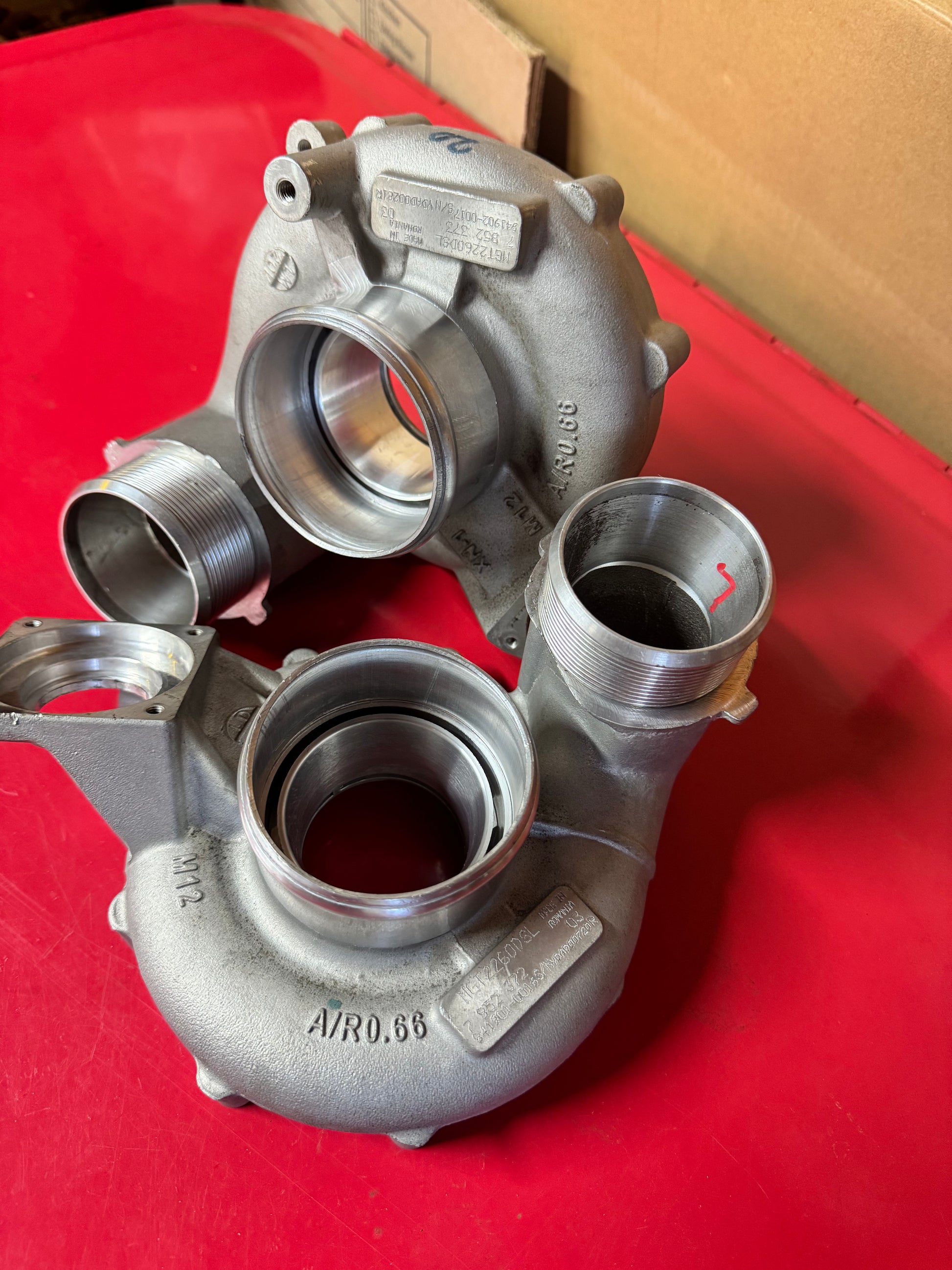 Oem twin turbocharger t51r modification for BMW S63 equipped vehicles years 2011-Present.